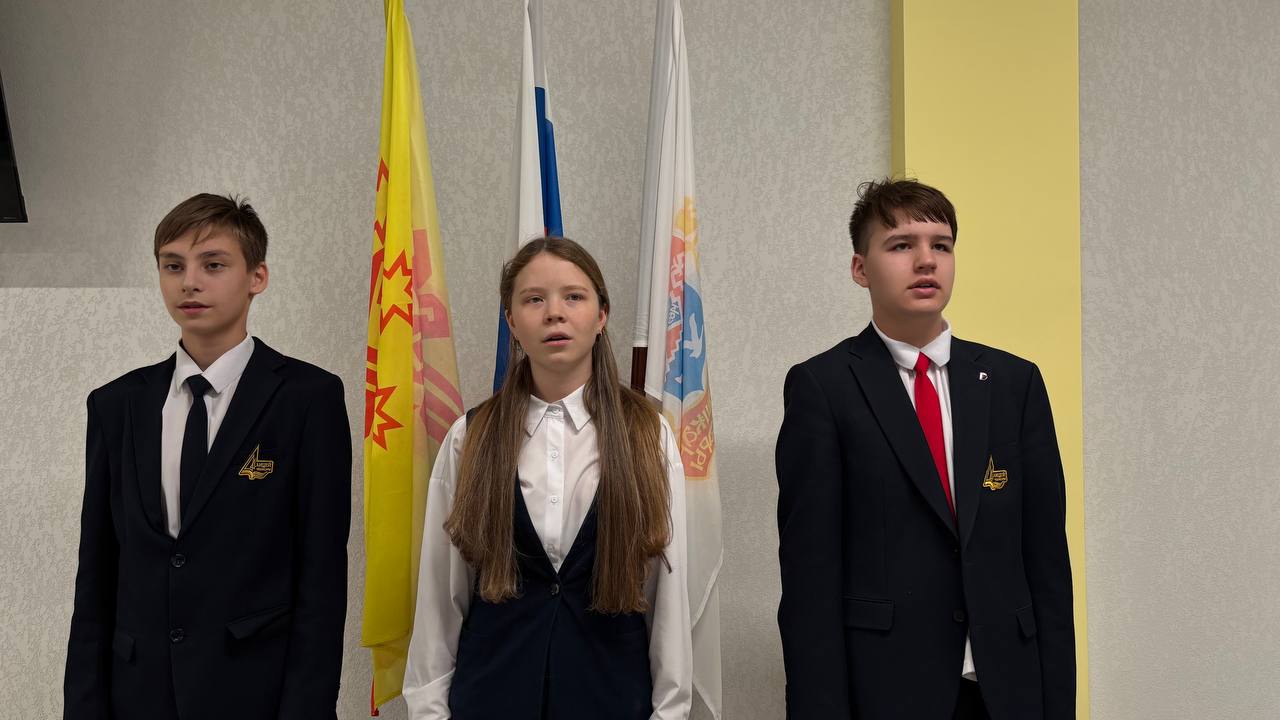 Завершилась очередная учебная неделя в школе, ознаменованная традиционным спуском государственных символов — флага Российской Федерации и Чувашской республики и г. Чебоксары.