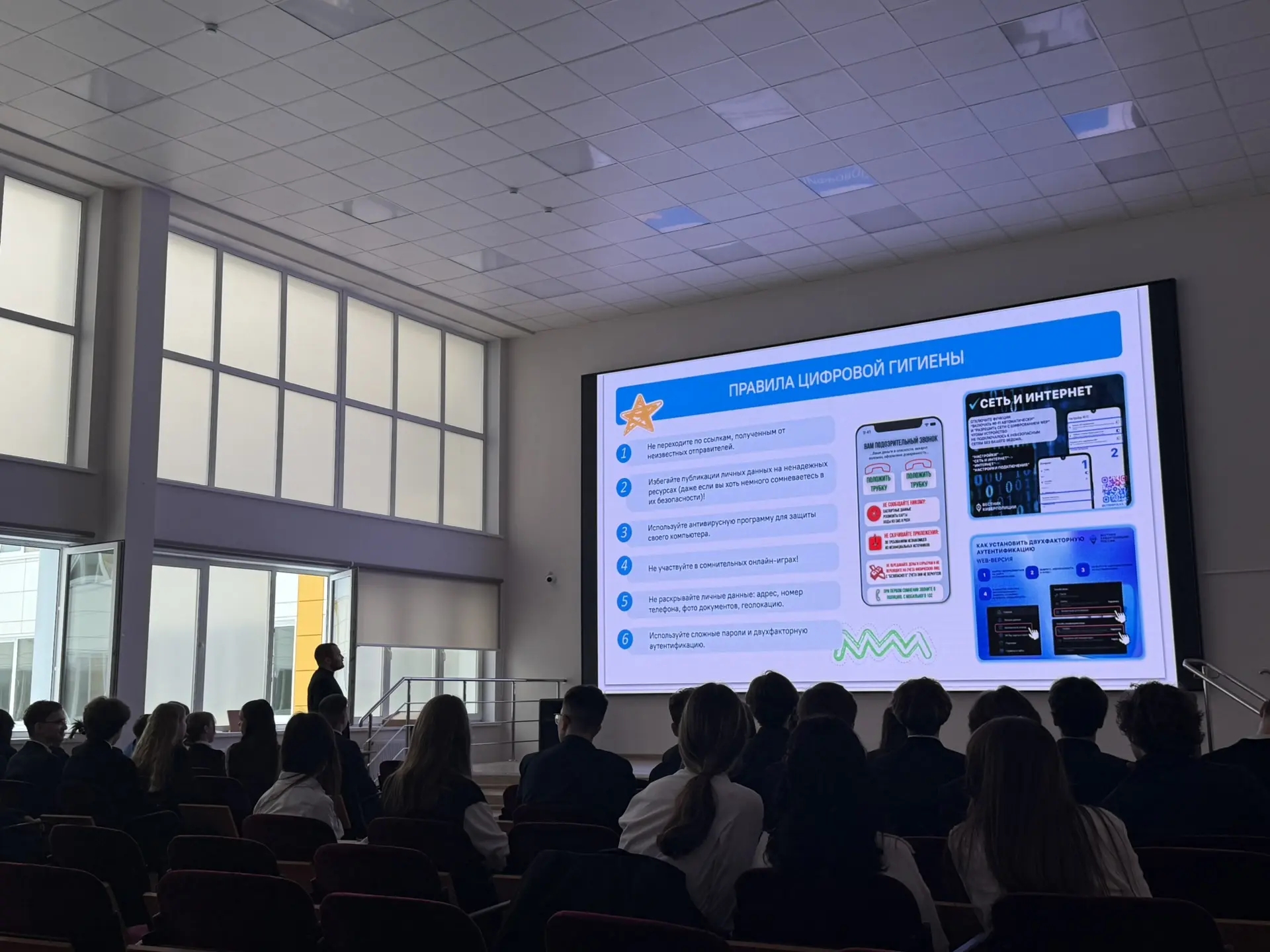 В ходе занятия школьники осмыслили, что такое безопасное поведение в Сети и почему интернет требует такой же осторожности, как и реальная жизнь. Речь шла о распространенных видах киберугроз: фишинге, мошенничестве, взломах аккаунтов, кибербуллинге, распространении недостоверной информации.