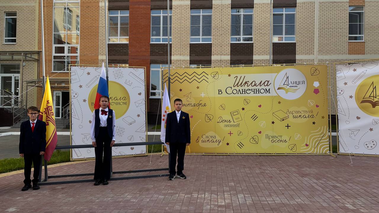 Завершилась учебная неделя в школе торжественным церемониалом спуска государственных символов: флага Российской Федерации, Чувашской Республики и города Чебоксары.